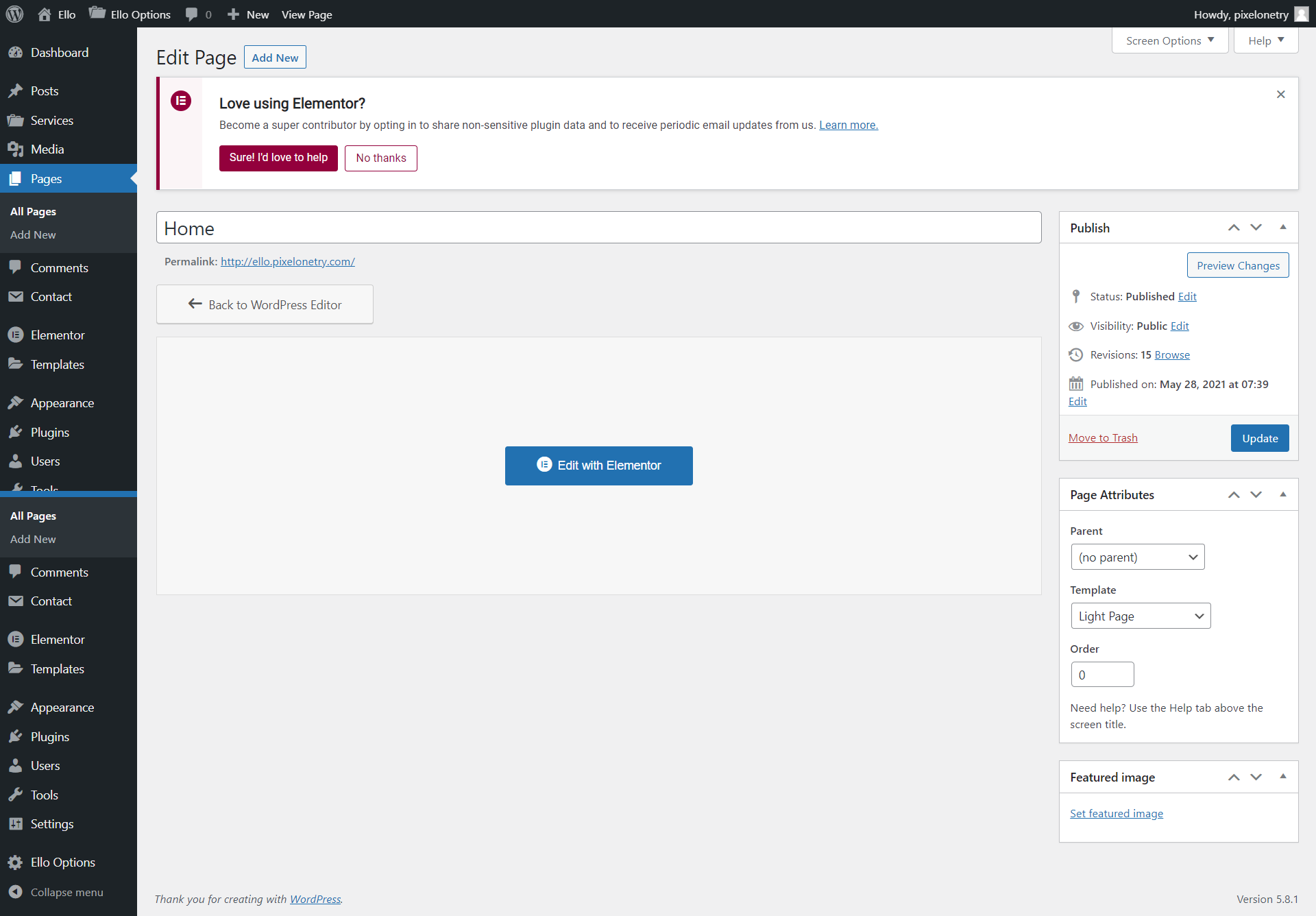 Step 2 – In the Page Attributes box on the right hand side, set the Template to Ligh , Dark, Moving, Video Youtube.